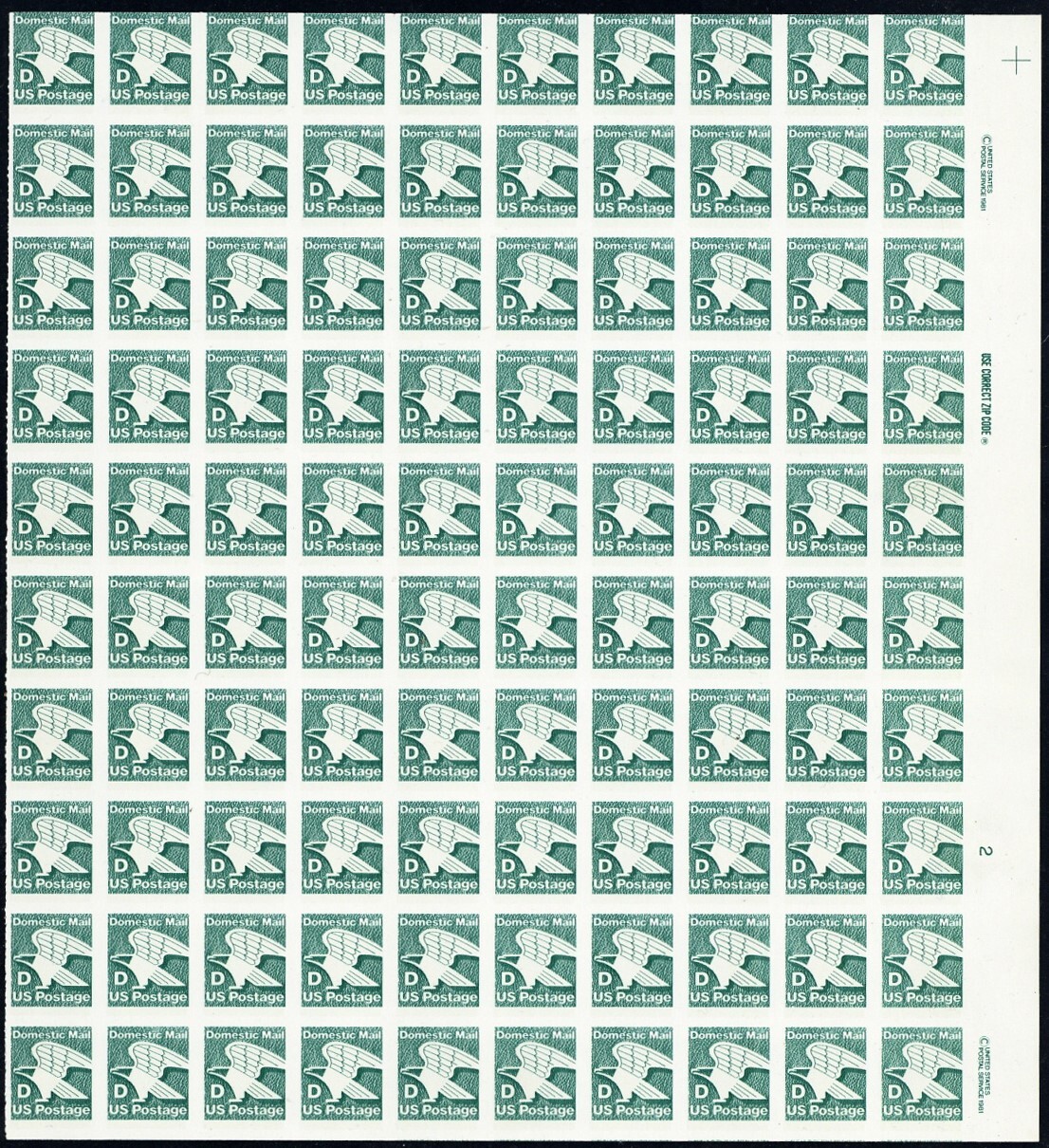 2111a, Mint NH "D" Complete Imperforate Error Sheet of 100 - Stuart Katz