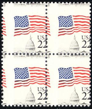 2114, Mint NH 22¢ - Dramatic Two Way Misperf Error Block * Stuart Katz