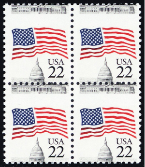 2114, Mint NH 22¢ Flag Misperfed Error Block of Four - Stuart Katz