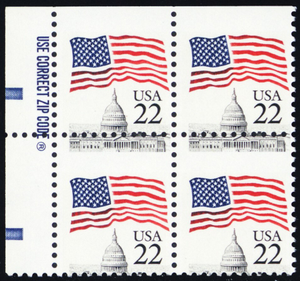 2114, Mint NH 22¢ Flag Misperfed Error Zip Block of Four - Stuart Katz