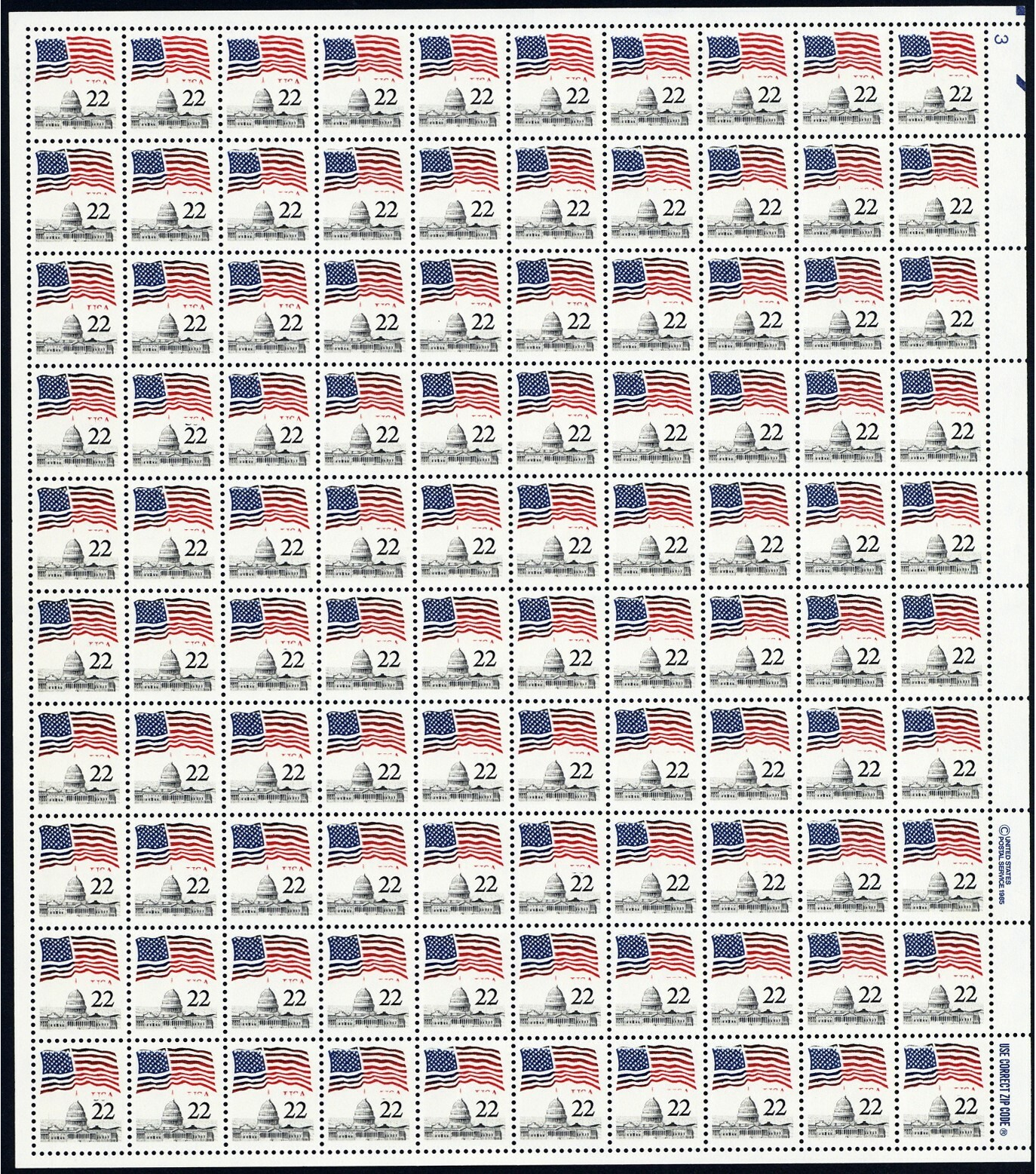 2114 Var, Partial Color Missing Error In Sheet of 100 Stamps - Stuart Katz