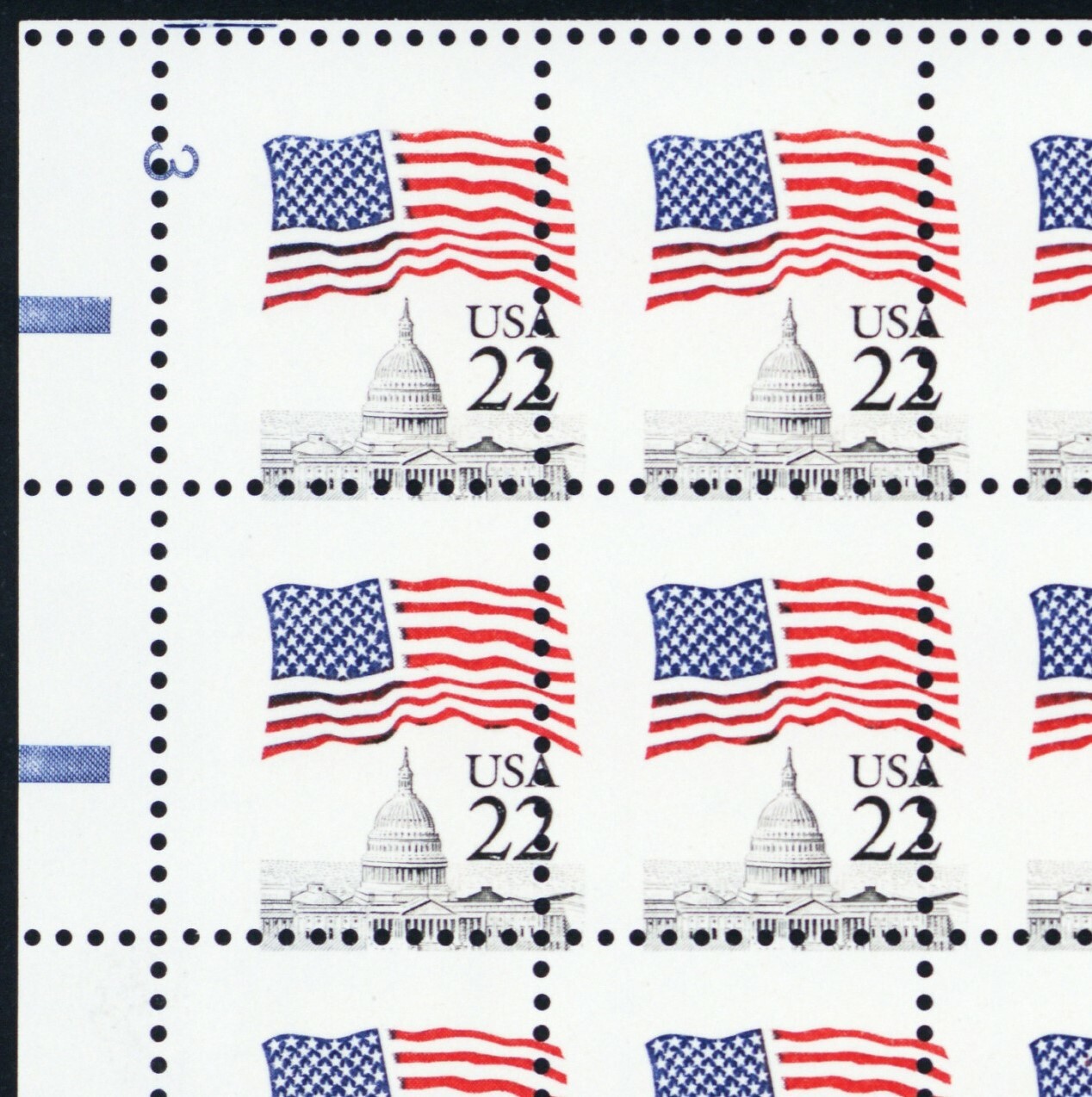 2114a, MNH 22¢ Flag Two Way Misperfed Freaky Error Pane of 100 - Stuart Katz