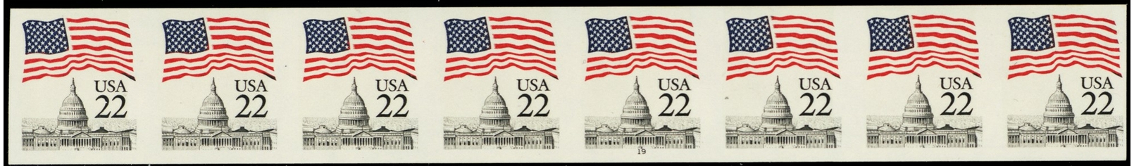 2115f, Mint VF NH PL# 19 Imperforate Freak Error Strip of 8 Stamps - Stuart Katz