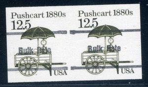 2133b, Imperf 12.5¢ Pushcart Coil Precancel Gap Pair, Mint NH, Scott $40++