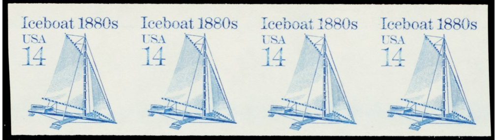 2134a MNH XF 14¢ Ice Boat Imperforate Strip of 4 ERROR Cat $160.00 Stuart Katz