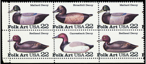 2141a, Mint NH 22¢ Misperfed Shift Error Block of Six Decoy Ducks - Stuart Katz