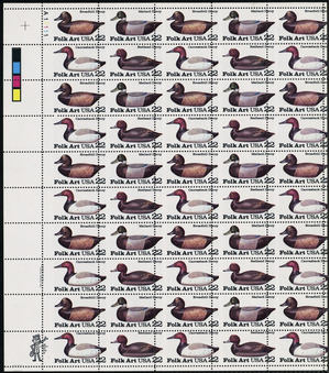 2141a, MNH 22¢ Decoys RARE Misperfed Freak Error In Complete Sheet - Stuart Katz