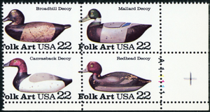 2141a, MNH 22¢ Duck Decoys Misperfed Plate Block Freaky Error - Stuart Katz