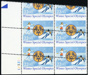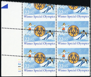 2142, Mint NH 22¢ Olympics Large Perf Shift Error Plate Block - Stuart Katz
