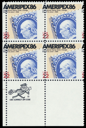 2145, Mint NH 22¢ Amazing Color Shift Zip Block of Four Freak Error Stuart Katz