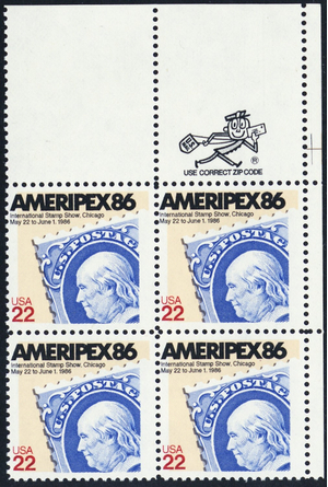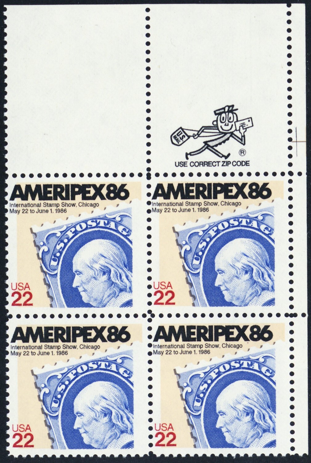 2145, MNH 22¢ With Colors Shifted Left Error Freak Zip Block * Stuart Katz