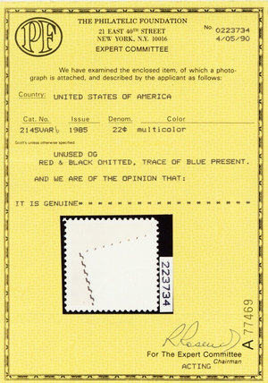 2145b, Red, Black Colors Omitted Error With PFC - Just 4-5 Known! - Stuart Katz