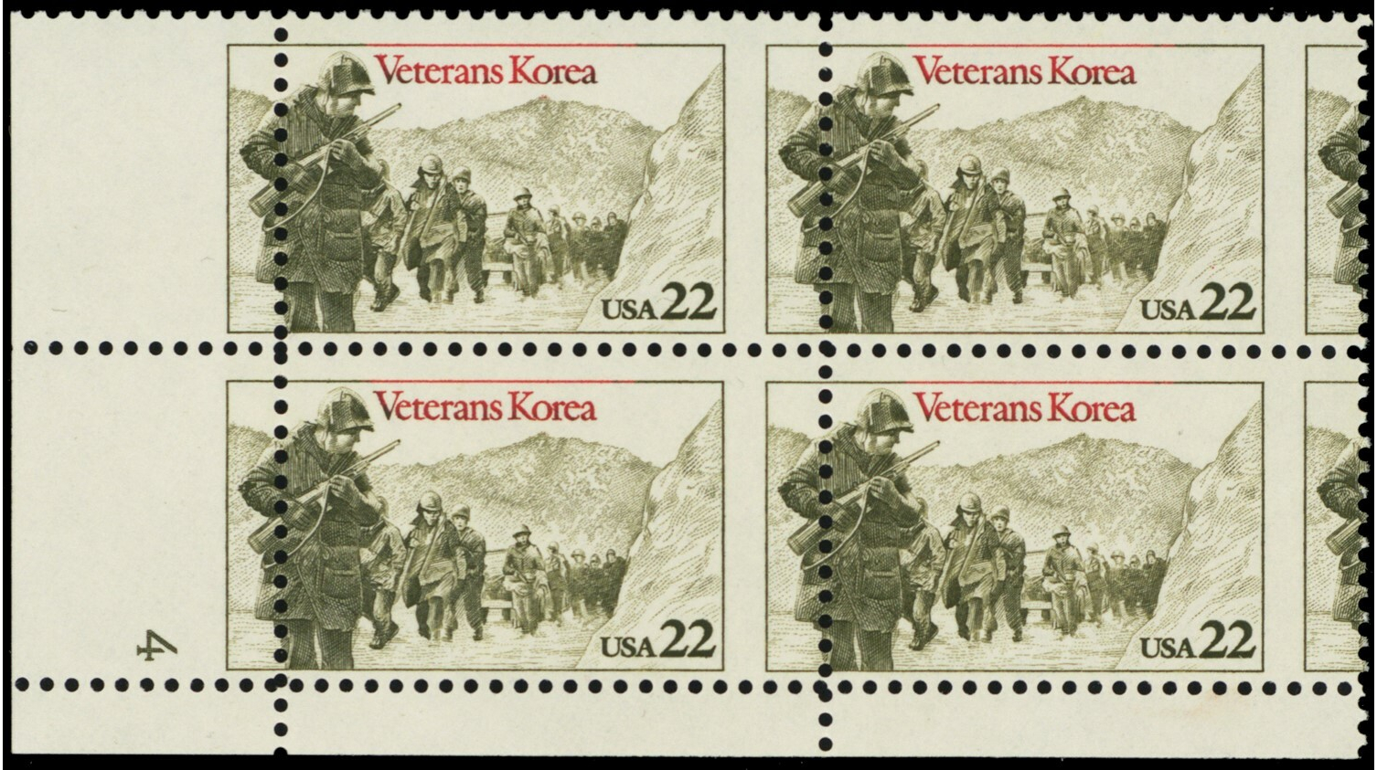2152, Mint NH RARE Misperfed Plate Block 22¢ Veterans Korea Error - Stuart Katz