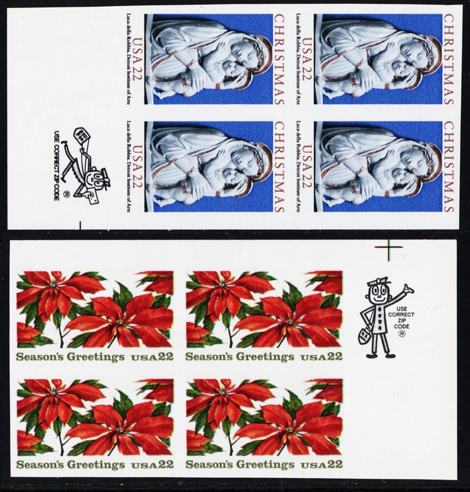 2165-66a, Mint NH 22¢ Imperforate Error Zip Blocks of Four * Stuart Katz