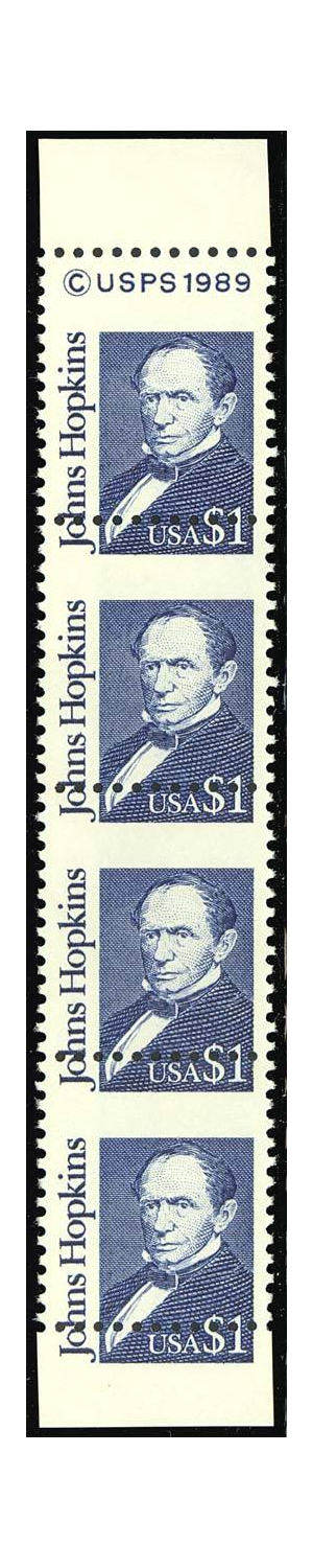 2194 Misperforated ERROR Strip of - $1 John Hopkins - Mint NH -- Stuart Katz