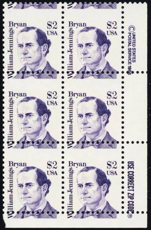 2195, MNH $2 Misperforated Freaky Error Zip Block of Six * Stuart Katz