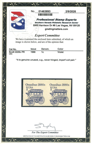 2225c, Imperf Pair, Mint NH, PSE Certificate, Scott $1100