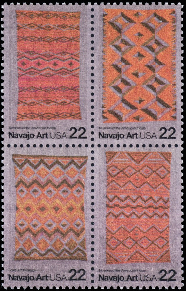 2238a, Big Solvent Smear ERROR Block of Four 22¢ Navajo Art MNH - Stuart Katz