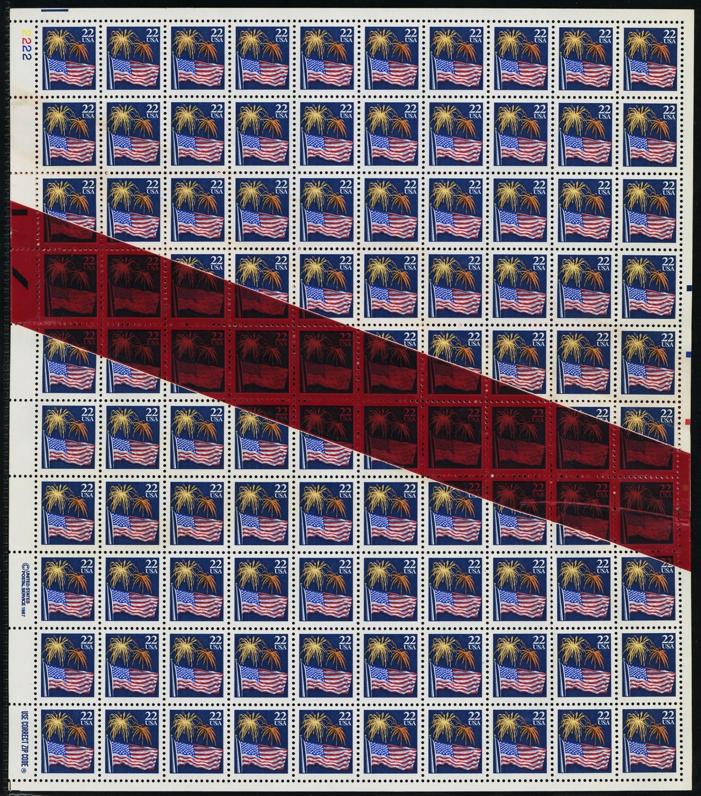 2276, 22¢ MNH Large Red Tape Splice Error Sheet of 100 Stamps - Stuart Katz