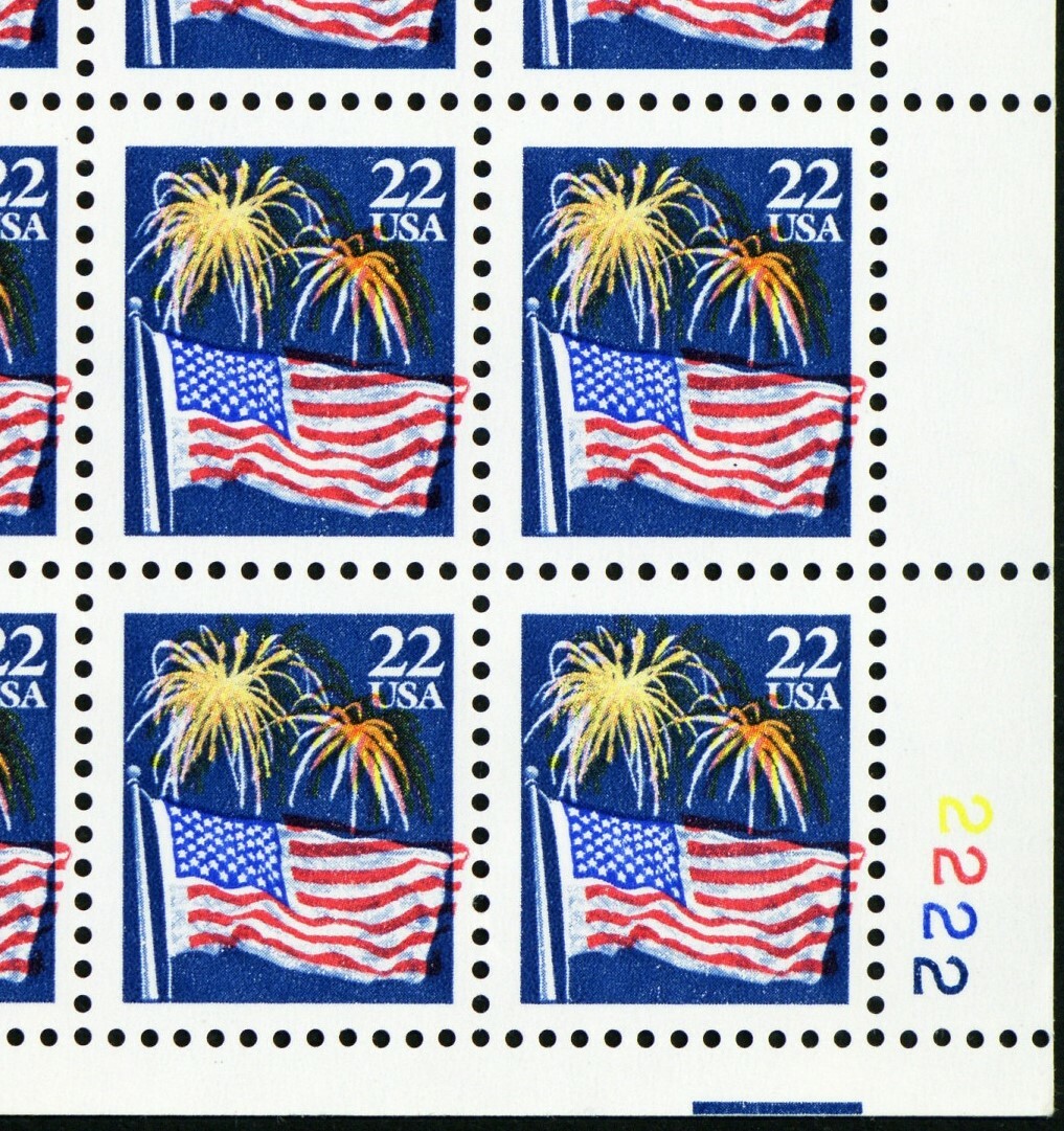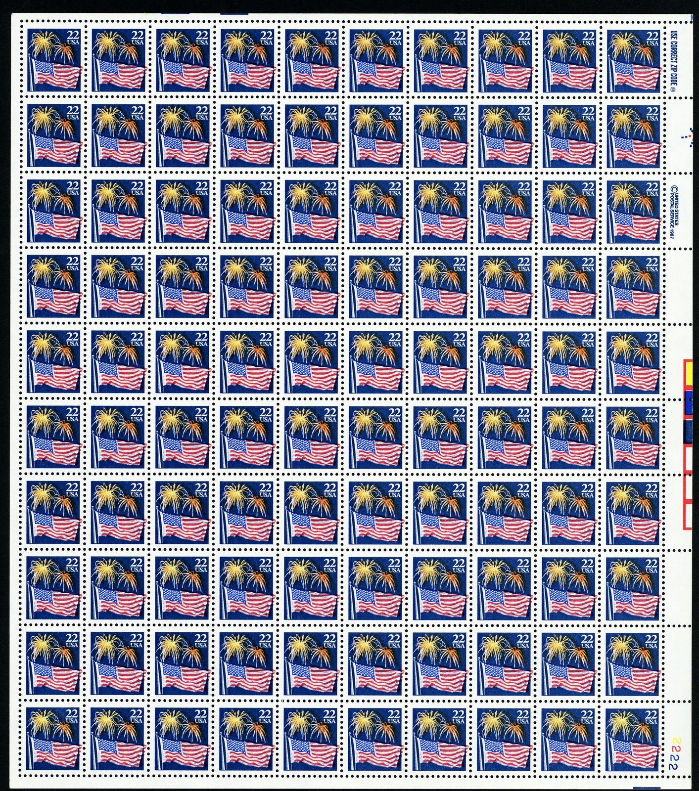 2276, Mint NH 22¢ With Red Color Shifted to the Right Sheet of 100 Stuart Katz