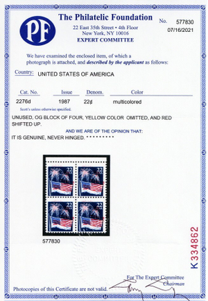 2276a, Mint 22¢ VF NH Yellow Color Omitted With PFC Cert - Stuart Katz