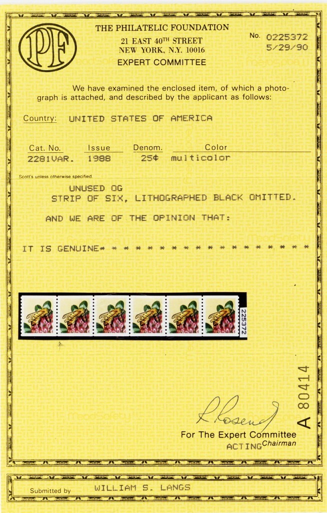 2281c, Mint XF NH Black Litho Color Omitted Error Pair With PFC - Stuart Katz