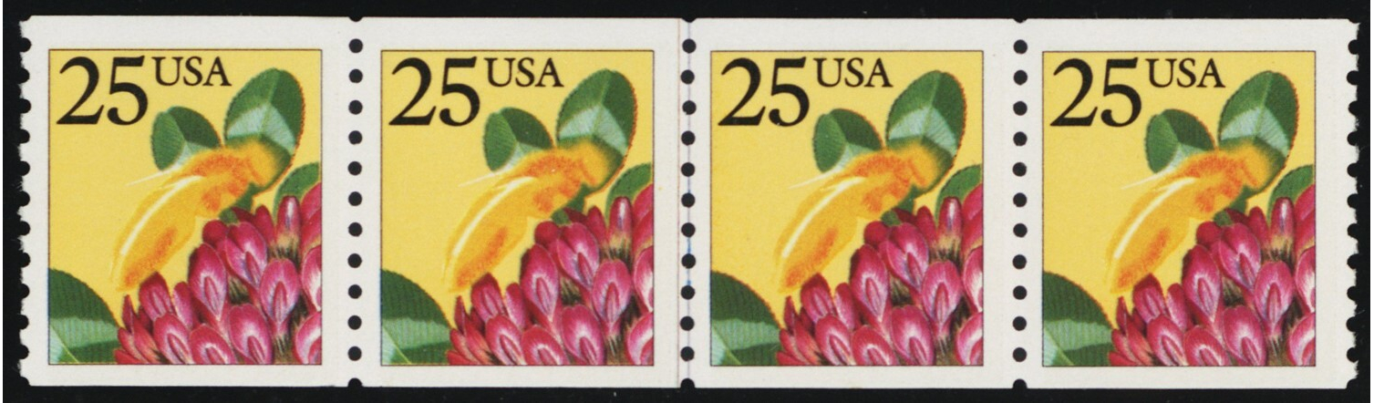 2281i, 25¢ Seam Line Strip/4 With Black Litho Color Omitted ERROR Stuart Katz