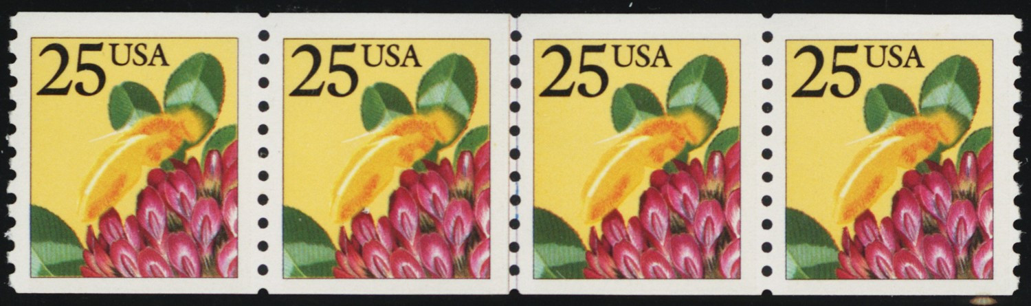 2281i, 25¢ Seam Line Strip of 4 With Black Litho Color Omitted ERROR Stuart Katz