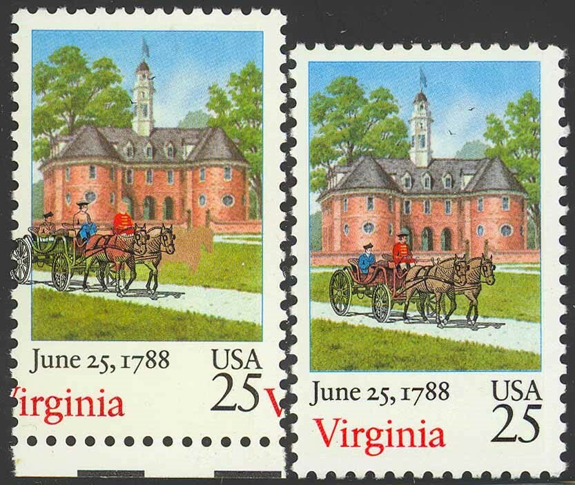2345, 25¢ Virginia Stamp With A HUGE Color Shift ERROR With Normal - Stuart Katz