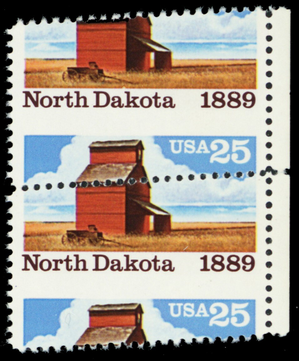 2403, MNH 25¢ Diagonal Misperf Shift Freak Error Pair N. Dakota -- Stuart Katz