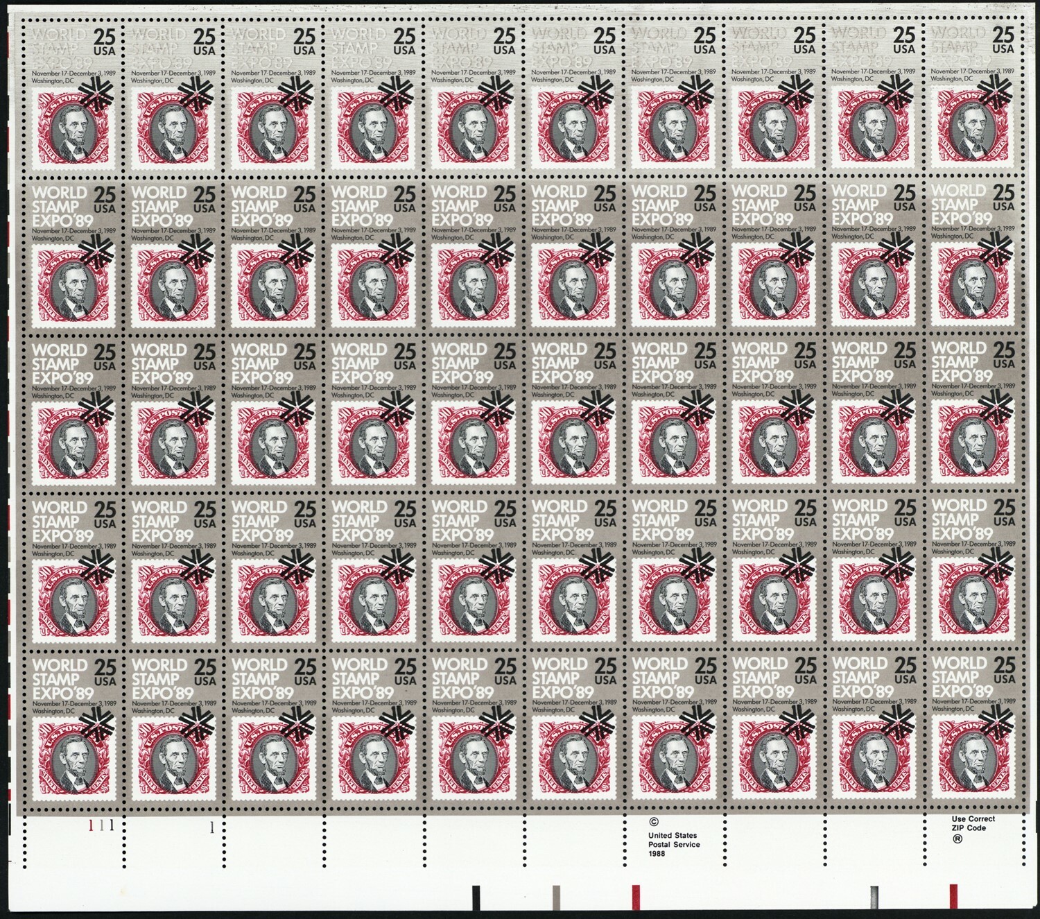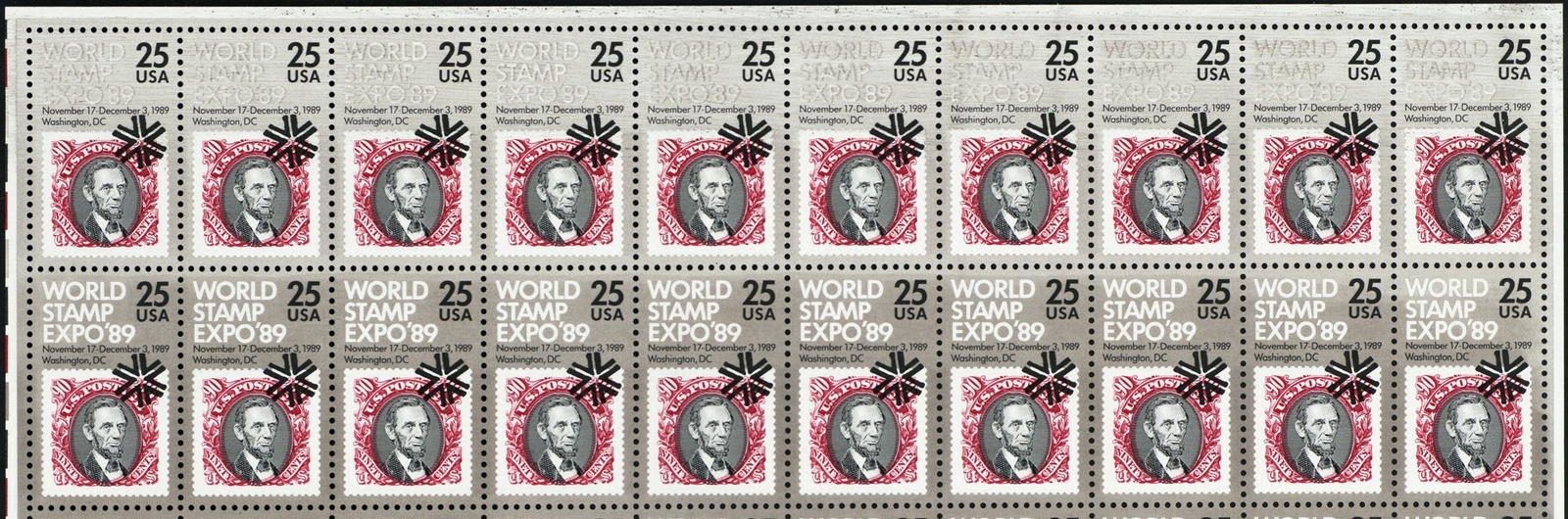 2410, Mint NH 25¢ Sheet Under Inking Error on Top Row - Stuart Katz