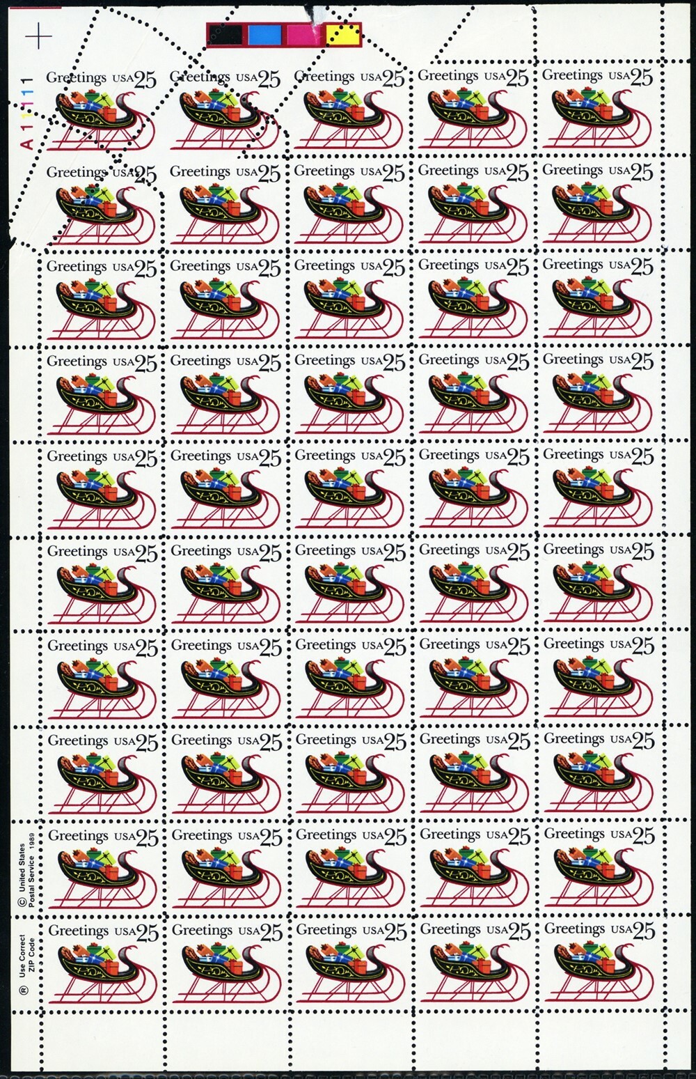 2428, MNH 25¢ Fold Over Error Creates Crazy Perforations Sheet - Stuart Katz