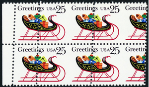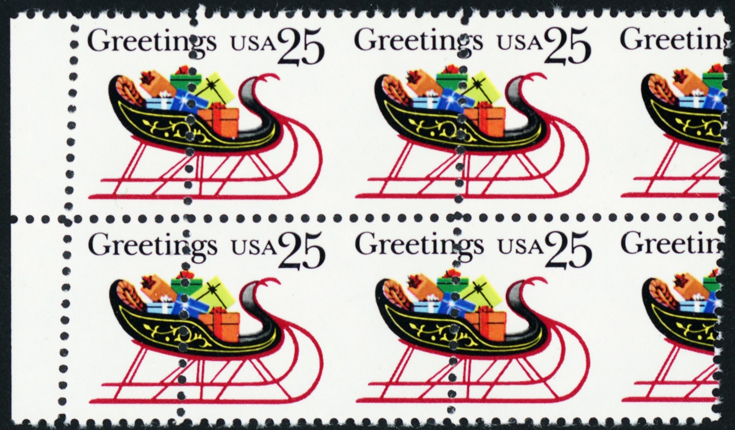 2428, MNH 25¢ Large Misperfed Shift Freaky Error Block Shows Gutter Stuart Katz