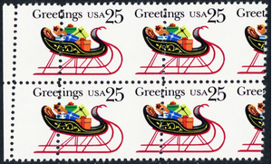 2428, MNH 25¢ Misperforated Freak Error Block -- Stuart Katz