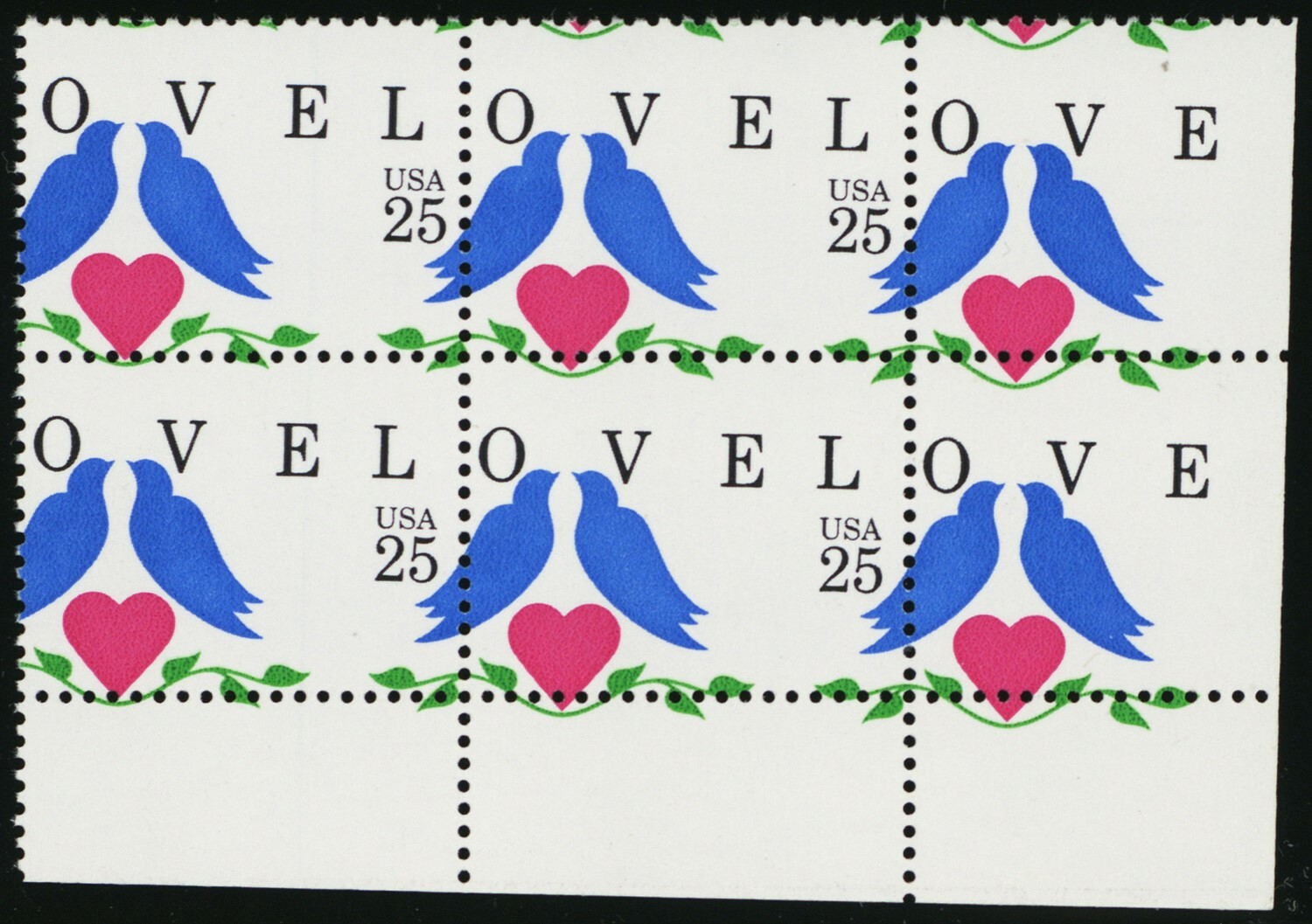 Right stamps missing the 25¢ denomination.