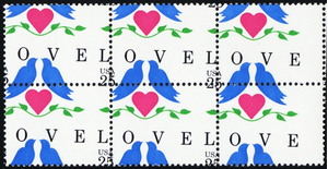 2440, MNH 25¢ LOVE Misperforated Freaky Error Block of Six * Stuart Katz
