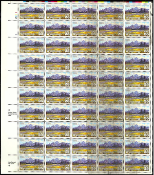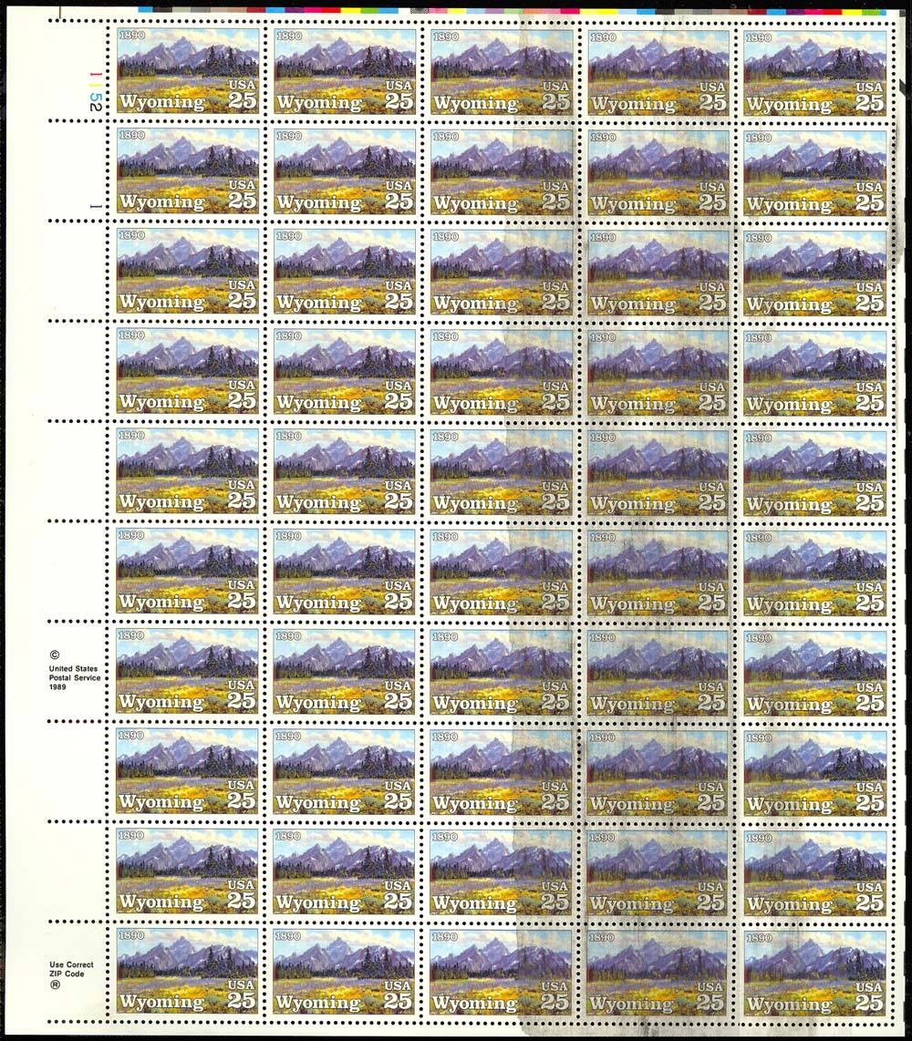 2444, Mint NH 25¢ WYOMING - LARGE SOLVENT SMEAR IN SHEET OF 50 - Stuart Katz