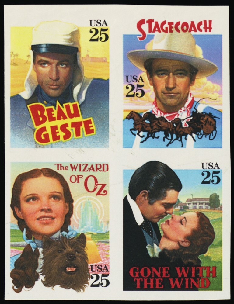 2448a, Mint NH 25¢ Imperforate Block of Four Movie Stamps - Stuart Katz