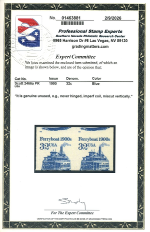 2466a Pair, 32¢ Ferryboat, Mint NH, shiny gum, PSE Certificate, Scott $375