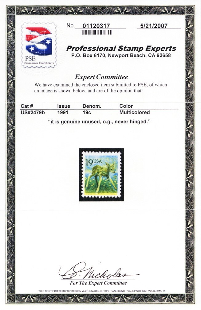 Due to the high cost of obtaining certificates we will only refund the cost of the stamp and not the cost of the certificate for stamps that sell for less than $250 that come back with a negative certificate. Stamps that sell for above $250 will receive a full refund for both the price of the stamp and cost of the certificate if it should come back not as described. For U.S. stamps only certificates from either APS, PSE or from the Philatelic Foundation are accepted, however "graded" certificates or "encased" items are not accepted.
