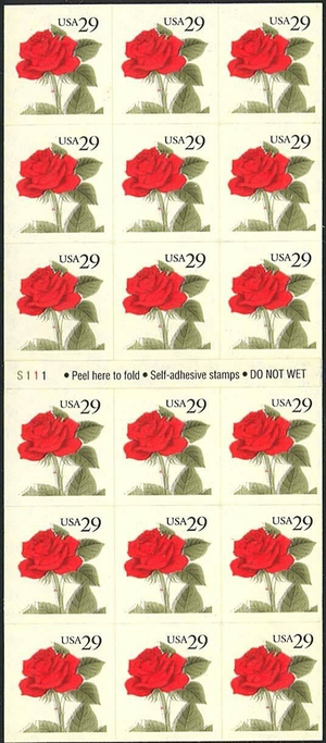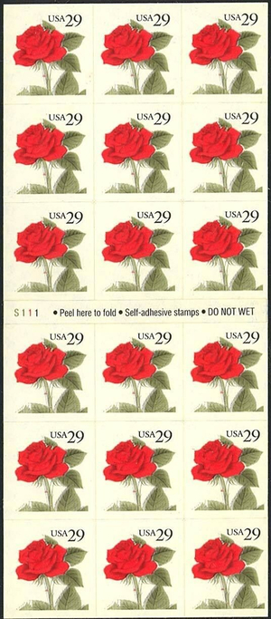 2490, GREAT COLOR SHIFT ERROR BOOKLET PANE - 29¢ ROSE