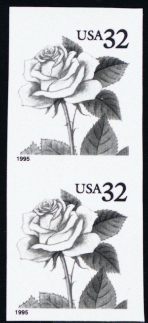 2492 32¢ Rose Imperforate and With Color Omitted Vertical Pair - Stuart Katz