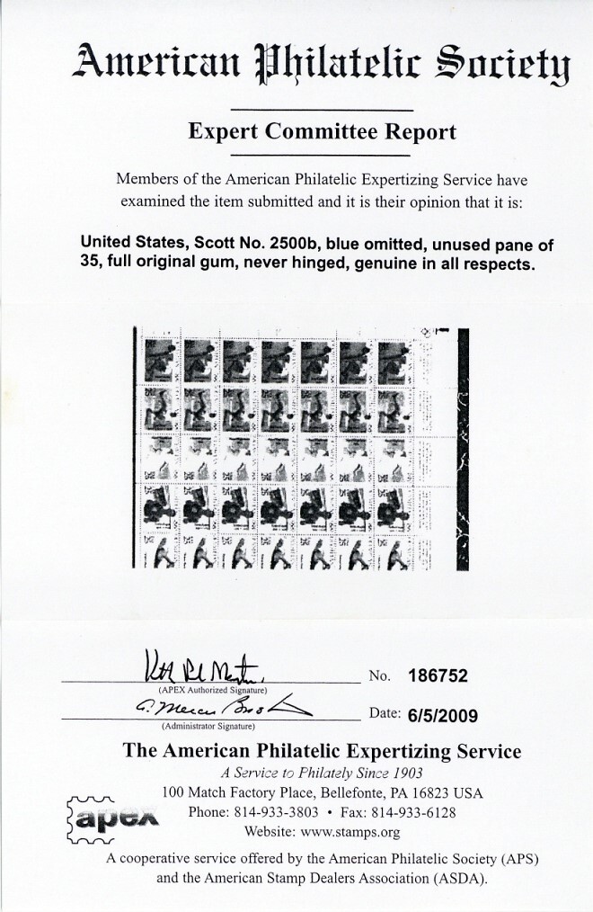 2500b, Mint NH Blue Color Omitted MAJOR ERROR With APS Certificate - Stuart Katz