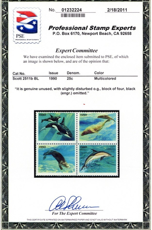 Due to the high cost of obtaining certificates we will only refund the cost of the stamp and not the cost of the certificate for stamps that sell for less than $250 that come back with a negative certificate. Stamps that sell for above $250 will receive a full refund for both the price of the stamp and cost of the certificate if it should come back not as described. For U.S. stamps only certificates from either APS, PSE or from the Philatelic Foundation are accepted, however "graded" certificates or "encased" items are not accepted.
