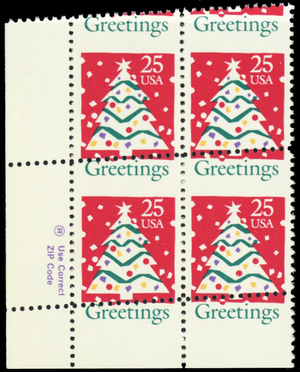 2515, Mint NH 18¢ Diagonal Misperfed Error Xmas Zip Block - Stuart Katz