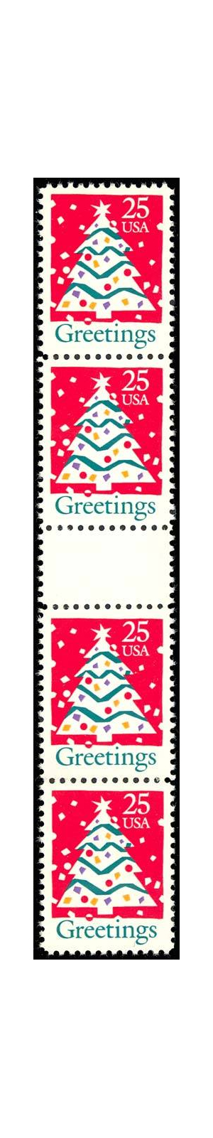 2515 Var, Mint NH 25c Xmas - RARE GUTTER STRIP OF 4 MAJOR ERROR - Stuart Katz