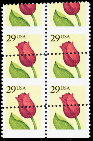 2524, MNH 29¢ Misperf Shift Freak Error Block of Tulip Stamps * Stuart Katz