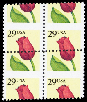 2524, MNH 29¢ Misperf Shift Freak Error Block of Tulip Stamps - Stuart Katz