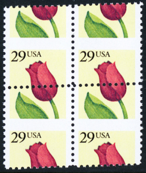 2524, MNH 29¢ Tulips Perfs Shifted Freaky Error Block * Stuart Katz