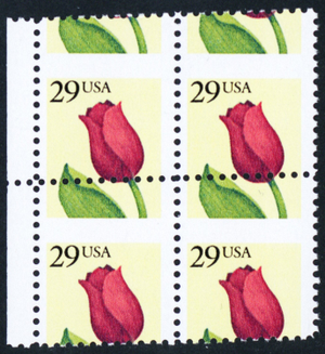 2524, MNH 29¢ Tulips Perfs Shifted Freaky Error Margin Block * Stuart Katz